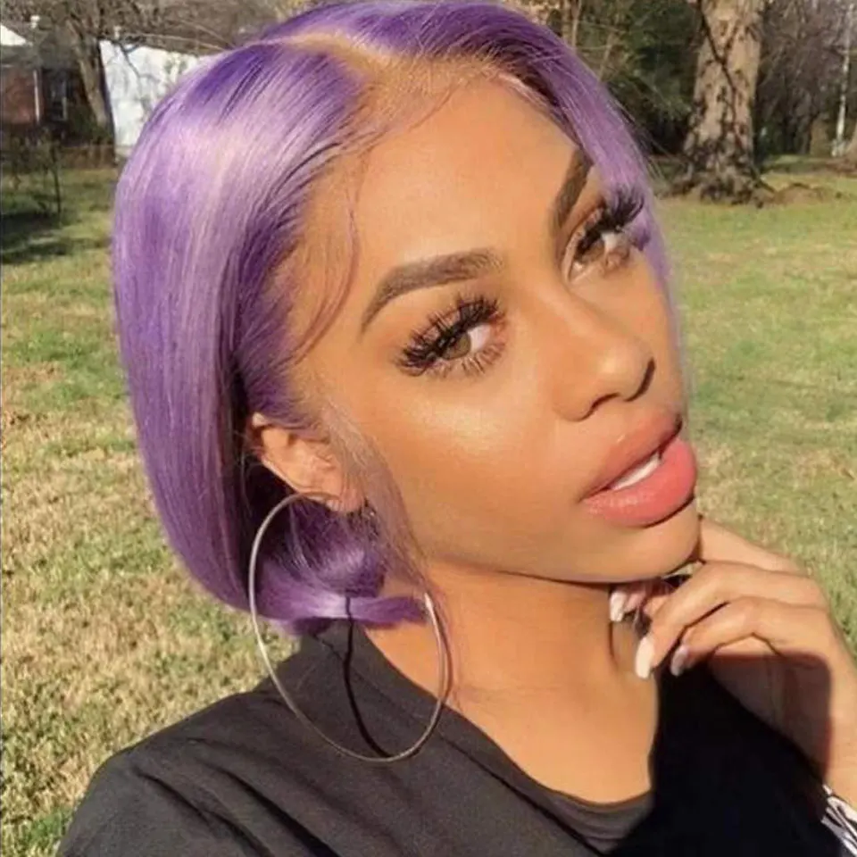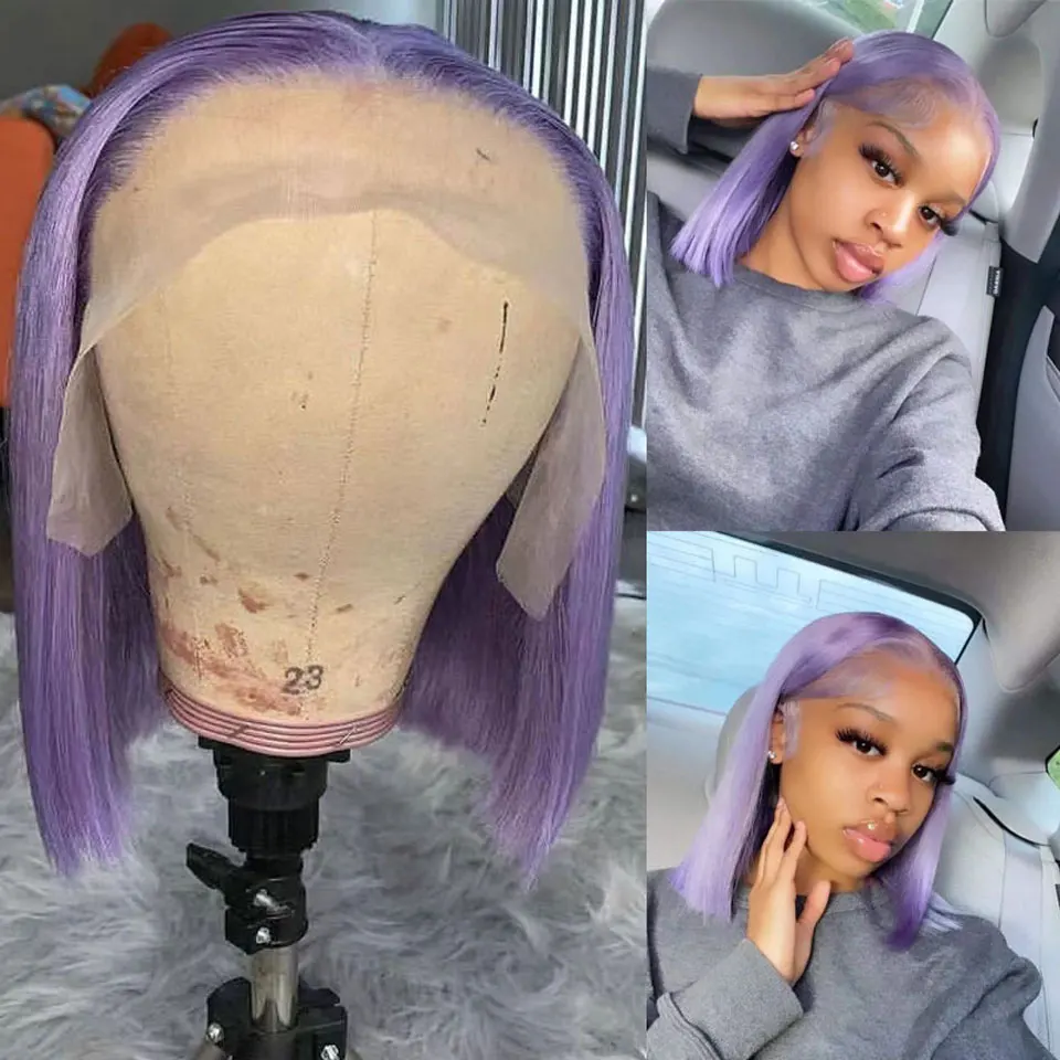 Bob Hair Wig Human Hair Light Purple Lace Front Wig 13×4 Lace Wig HD Transparent Lace Frontal Wig Brazilian Remy Hair Wig 180%